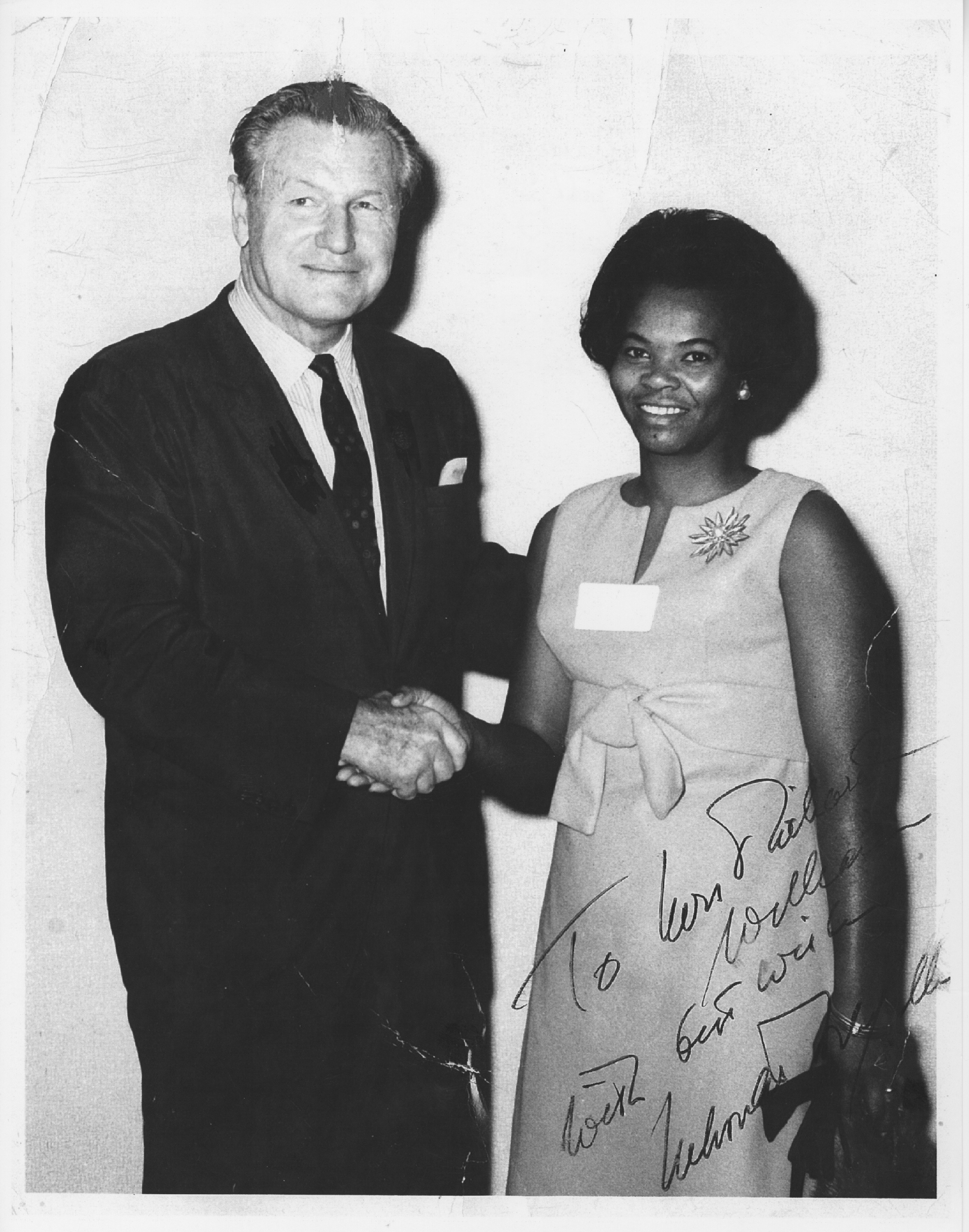 Mary Williams with Gov. Nelson A. Rockefeller at Massaro Park in North Elmsford, c1967-68.
