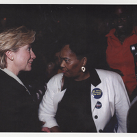 Photo of Mary Williams with Hillary Clinton at the Theodore D. Young Community Center in White Plains. Clinton visited the center with Congresswoman Nita Lowey sometime during President Clinton's term. - desc. from Richard D. Williams