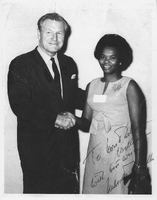 Mary Williams with Gov. Nelson A. Rockefeller at Massaro Park in North Elmsford, c1967-68. Mary Williams with Gov. Nelson A. Rockefeller at Massaro Park in North Elmsford. "From either 1967 or 1968 and the donation from Rockefeller was for an above ground pool that was built at Massaro Park in North Elmsford on Payne Street. The Town of Greenburgh eventually sponsored a "Learn to Swim" program at the park for children of North Elmsford. The pool was named the "Mary R. Williams Pool." - desc from Richard D. Williams